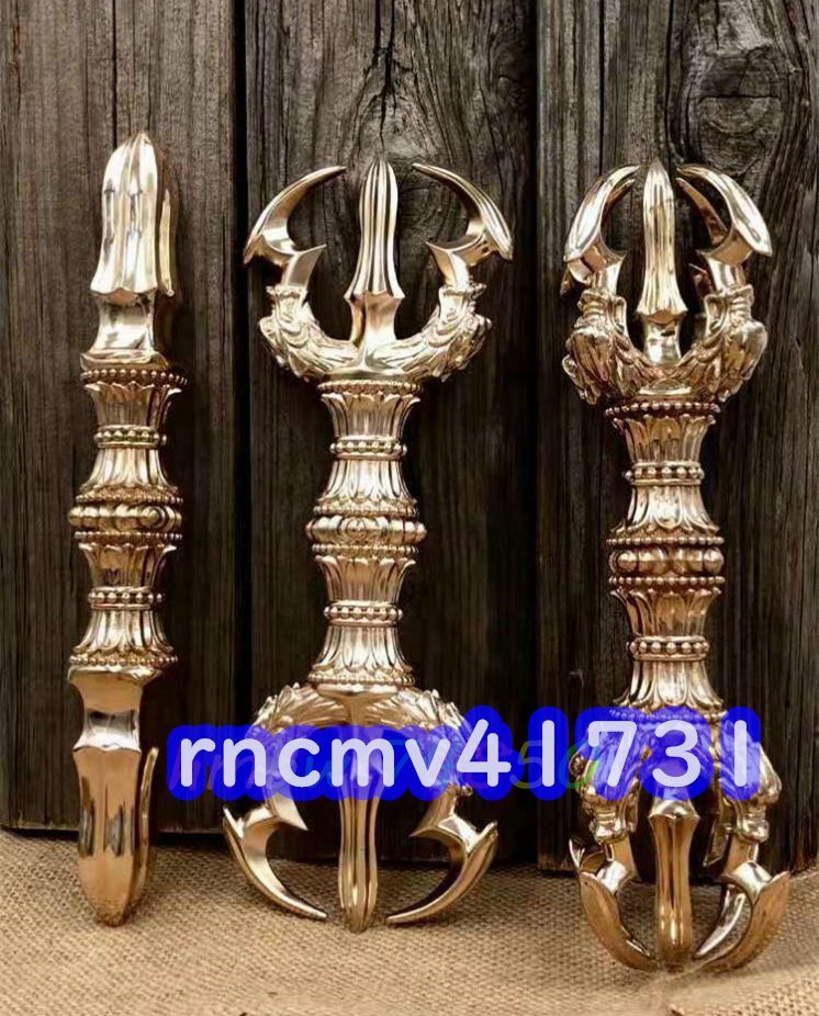 「81SHOP」極上品 真言宗 弘法大師 唐型 五鈷杵/三鈷杵/独鈷杵三点セット 響銅製 磨き仕上げ 長さ22cm