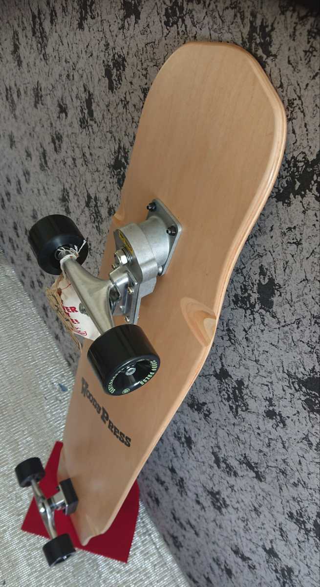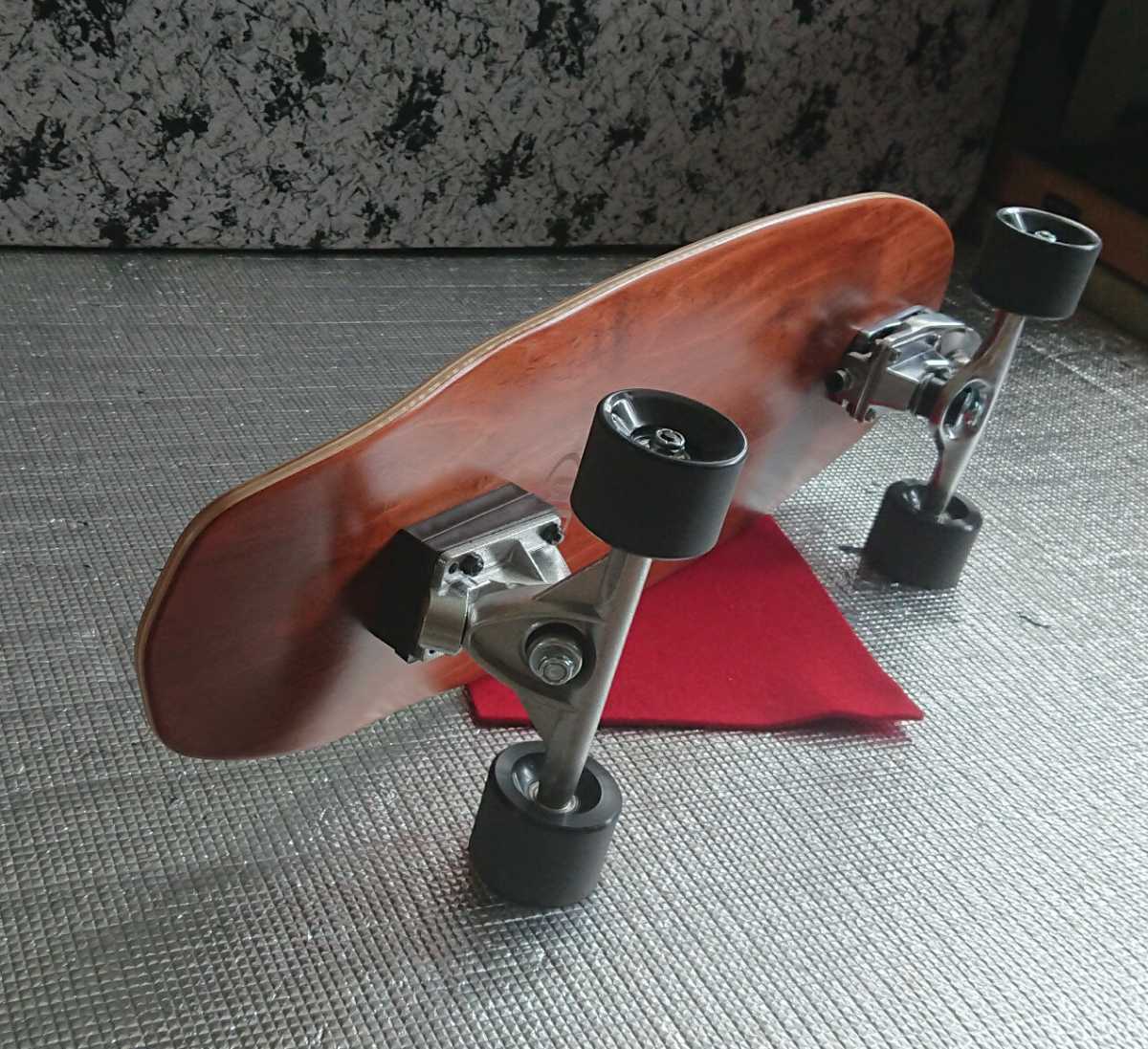 ■スラスターシステム①はセッティングしますと フロントトラックがウィ-ル一個分内側にセッティングになりますのでロンスケ(90cm前後位以上)の板に合います! スラスターシステム②-③は 板のノーマルセッティングの位置が同じになりますので ロンスケは勿論 長さを問いません しかしこの構造こそが小力での推進力を生む源です