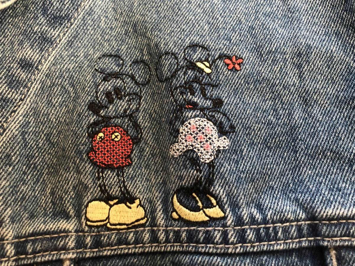 ミッキーマウス、ミニーマウスの刺繍が入ってます。