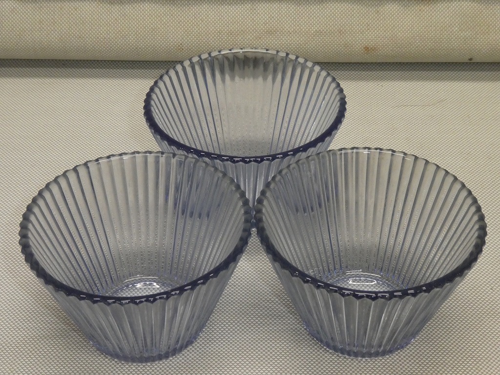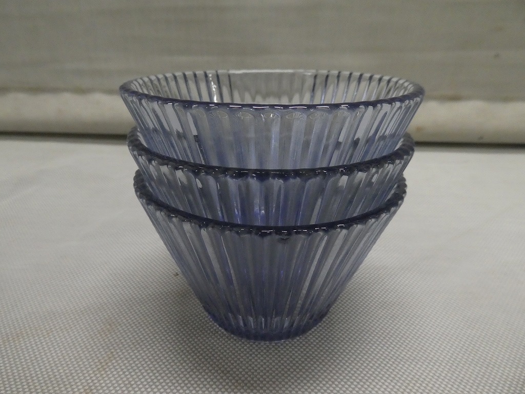 ●●昭和レトロ ブルーガラス 水色 硝子 小鉢 3客 和食器 洋食器●●