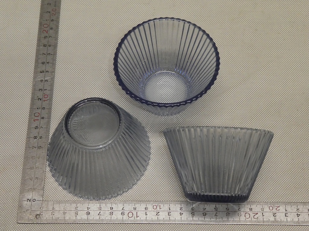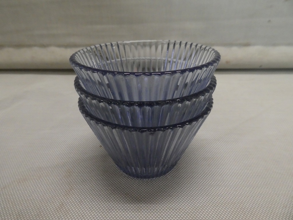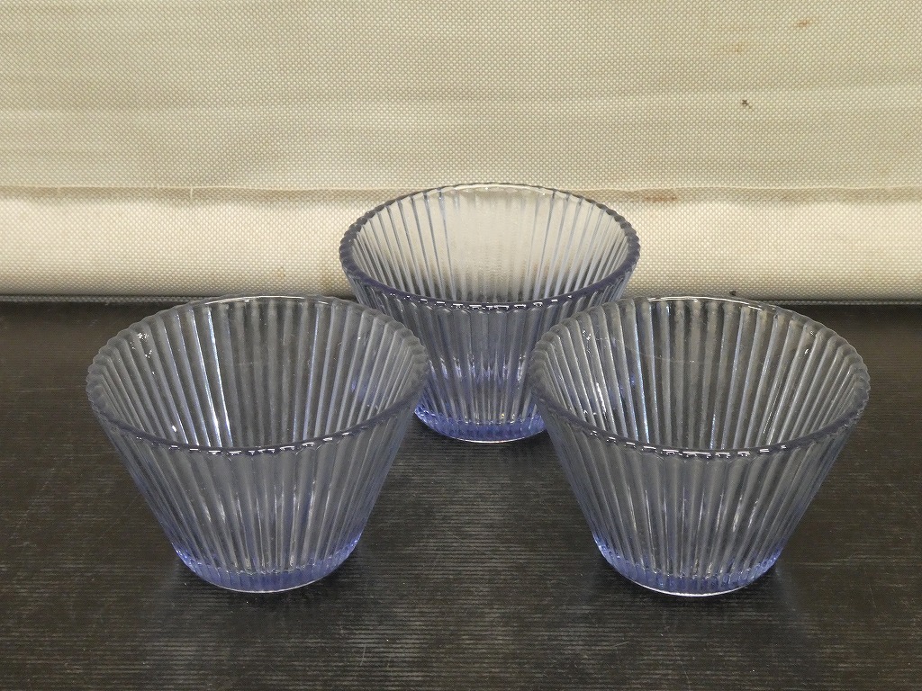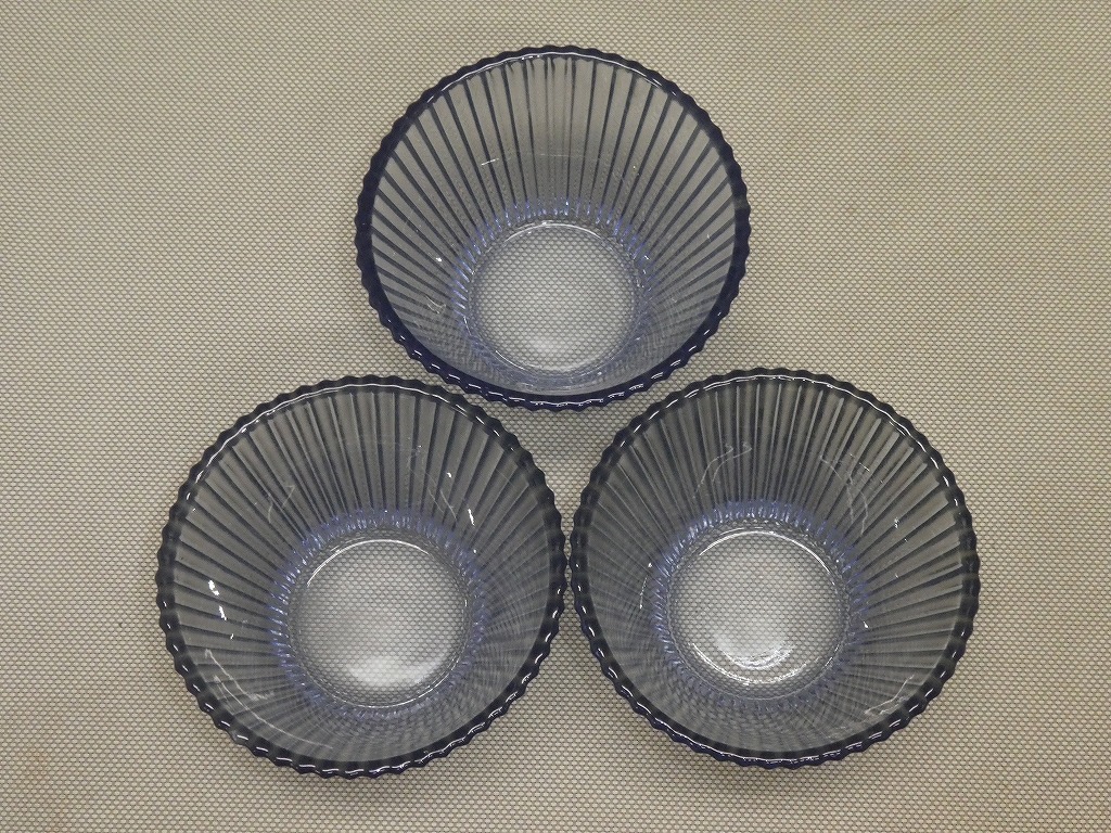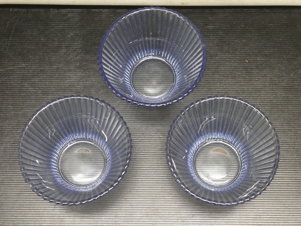 ●昭和レトロ ブルーガラス 水色 硝子 小鉢 3客 和食器 洋食器 時代物 ヴィンテージ●