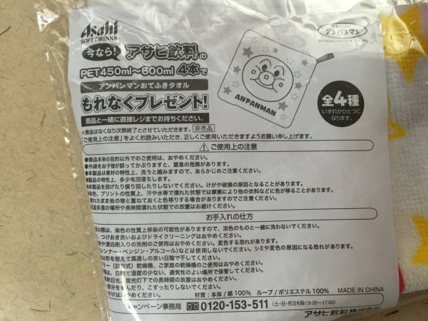 【同梱不可!】【アサヒ】アンパンマン おてふきタオル