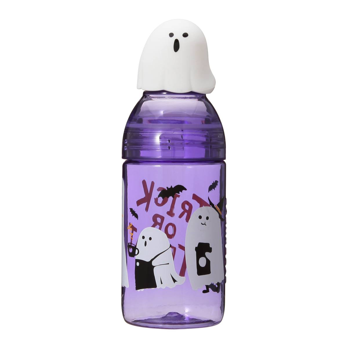 ハロウィンを象徴する「ジャックオランタン」や、ペーパークカップを持ったり、エプロンを着けた「ホワイトゴースト」が描かれた、このシーズン限定デザインのボトルです。