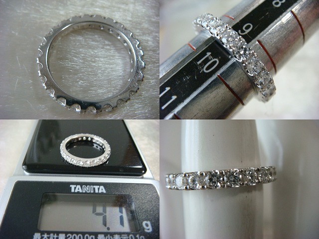 | ご覧頂きましてありがとうございます! プラチナ製 フルエタニティーリングです。サイズは約9,5です。pt900の刻印入り。 ダイヤモンドは1,16カラットです。1,16の刻印入り。重さは約4,1gです。 ダイヤモンドは透明度がありとても綺麗です。 新品のケースに入れてお届けいたします。 追加画像がありますのでパソコンでご確認ください。 宝石との出会いは一期一会です。『いいな』と思ったら是非、身につけてあげて下さい。きっと宝石も喜ぶことでしょう! 宝石は決して貴女を裏切りません。身につけた貴女を守ってくれることでしょう。 いつも頑張っている自分へのご褒美にいかがでしょうか? 良いものをひとつお持ち下さい。一生物のジュエリーとなります。 画像での判断は難しいと思いますが、落札後の返品、クレーム等の無きよう、ご自分の自己責任においてご入札下さい。 モニター、パソコン、カメラによって色や感じ方が変わりますのでご注意下さい。 商品についてはコレクター、質屋さん、お客様の委託品が中心ですので、ご質問の答えが遅くなる事がありますがご了承下さい。 商品説明につきましてはすべてをお知らせできませんので、質問にてお願いいたします。 基本的にはUSED品ですので、その点を十分にご理解の上ご入札下さい。 途中で出品を取り下げる場合もありますがご了承下さい。 尚、トラブル回避の為、申し訳ございませんが、新規の方及び評価によってはこちらで入札を削除させていただく場合もございますが、ご理解下さい。 メールの確認は夜になりますのでご連絡が遅くなることもありますがご了承願います。 品物にも人と同じように『こころ』があると思います。喜んでいただけることが私にとっても品物にとっても一番良いことだと思います。 『落札したけど気に入らなかった』ということが無いように十分にお考えになってからご入札下さい。 発送は宅配便を予定しております。また発送には2,3日かかる場合もございますが、ご了承願います。 お互いに気持ちよい取引のため、落札後3日以内のご連絡、5日以内のご入金頂けない場合は申し訳ございませんが取り消しさせていただきます。 落札金額より僅かですが『子ども虐待防止 オレンジリボン運動』へ寄付をさせていただきますがご了承お願いいたします。 | |