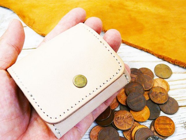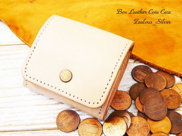 手のひらに納まるサイズのボックス型のレザーコインケース♪