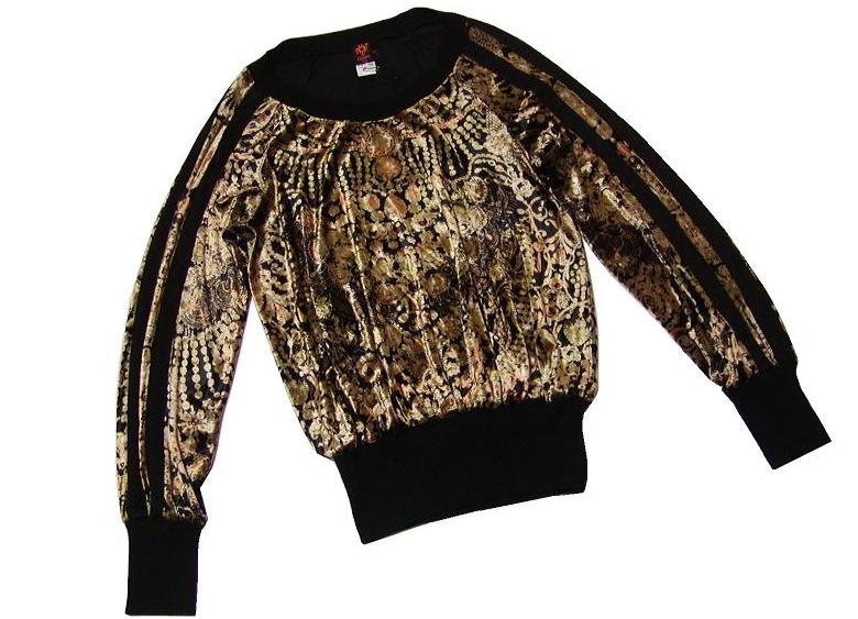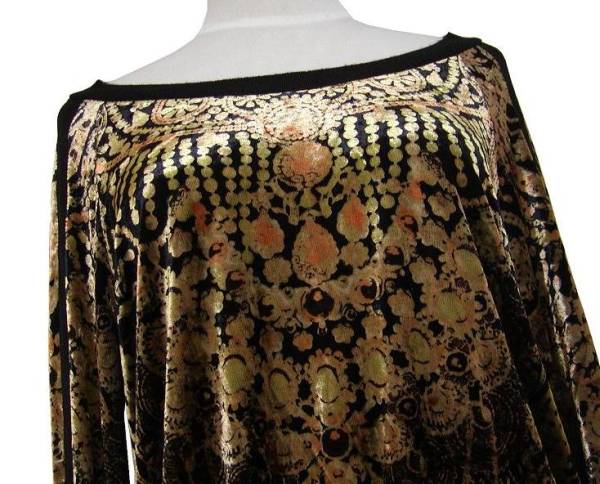 Jean Paul GAULTIER SOLEIL のイタリア製、 リブ切替ビジュー柄ベルベットトップスでございます。 伸縮性あり/ | |