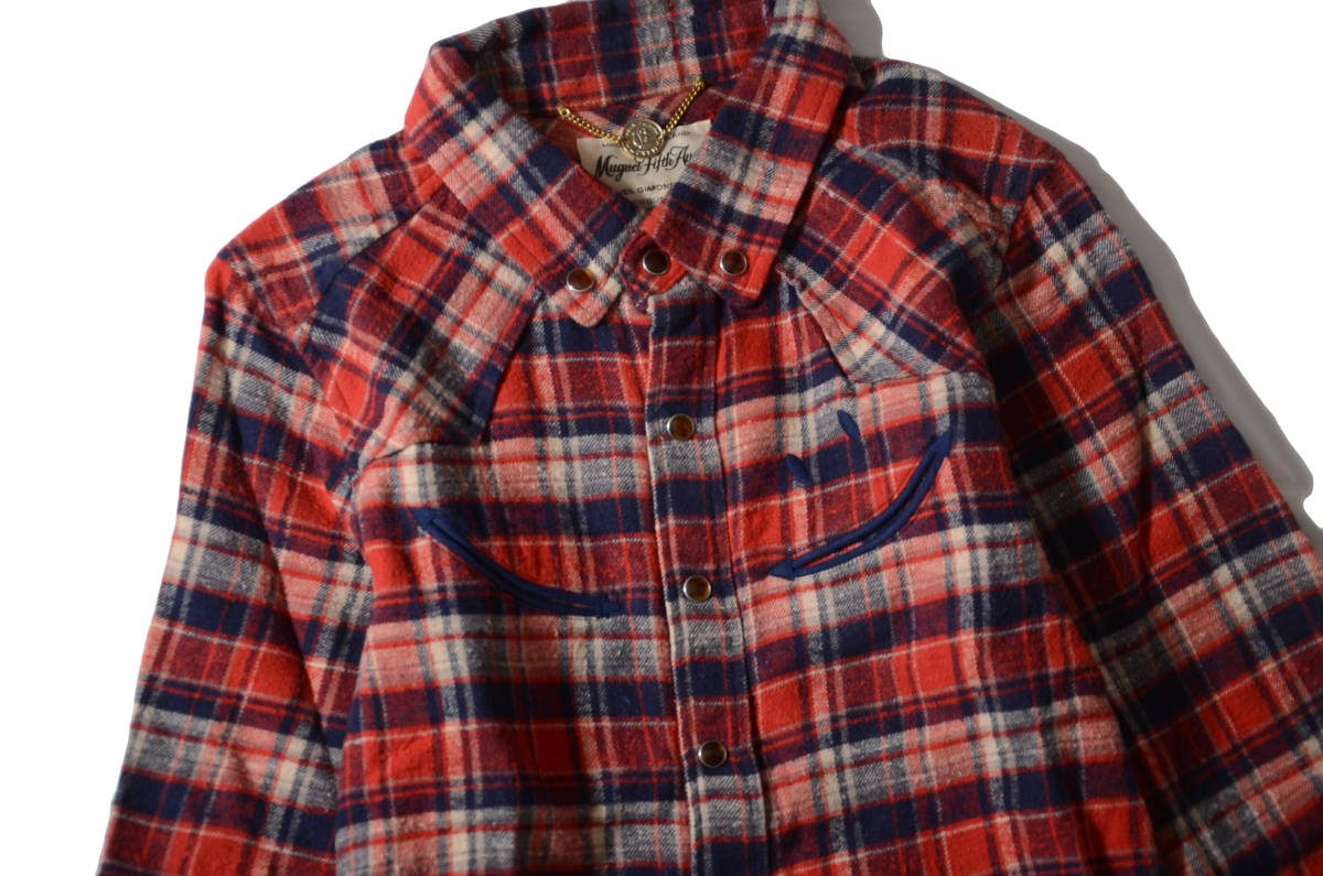 muveil ミュベール ニコちゃんポケット ウエスタン風 ネルシャツ 36 2点以上ご落札で送料無料!