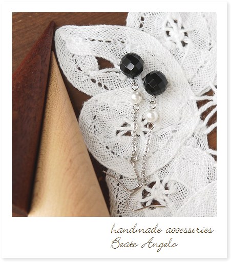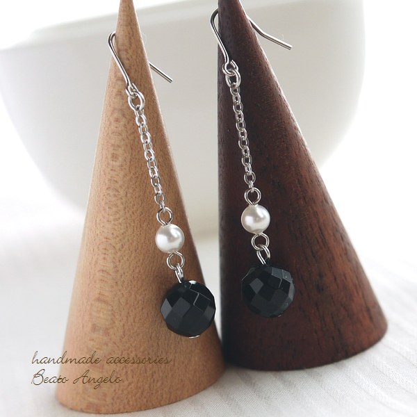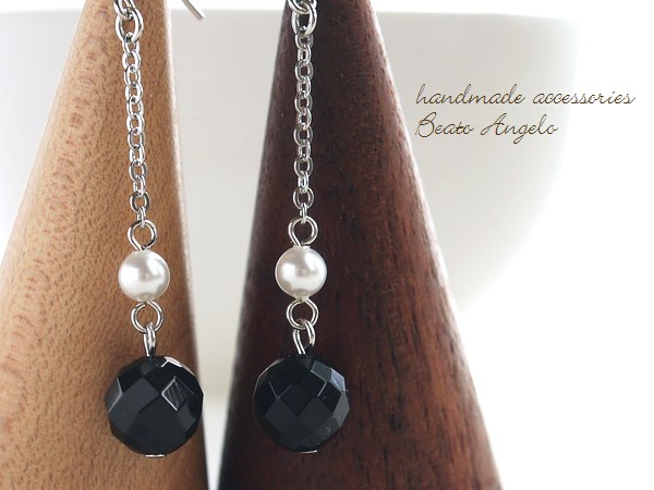 ◆◆+angelo+天然石ブラックオニキスとパールのチェーンピアス(p-116)S チタン 樹脂 イヤリング