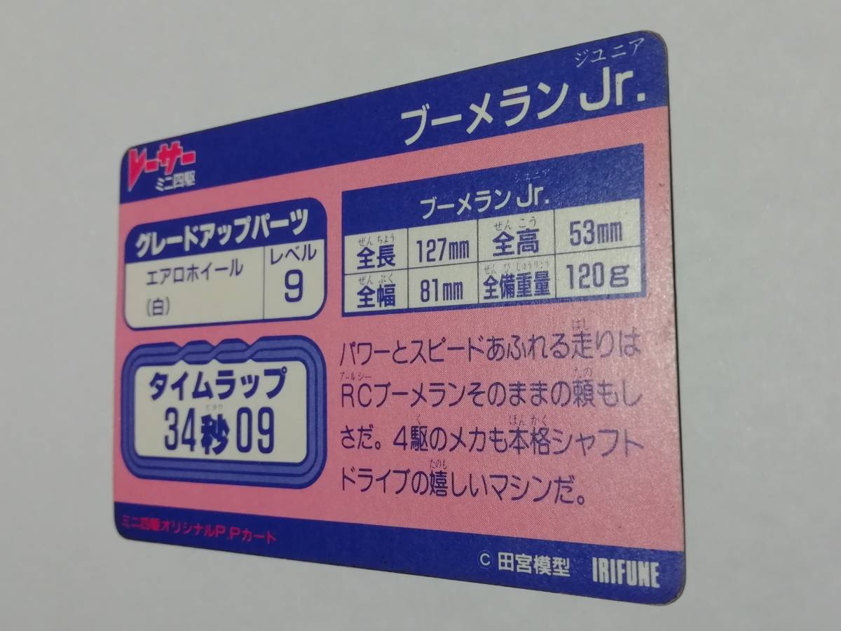 『リクエスト出品可能』稀少品・レーサーミニ四駆P.Pカード・IRIFUNE・『ブーメランJr.』(田宮模型・TAMIYA・袋引きカード)●【全体的な状態5段階評価】C・凸凹イタミの品【カード表面】凸凹イタミ、キズ、ヨゴレなど【カード裏面】微イタミ微ヨゴレ【その他】画像をご確認ください。●状態の5段階評価・S(新品・極美品)A(美品~良品)B(並品)C(部分難の有る品)D(処分品・粗悪品)●その他の傷みなど目視できる範囲でお知らせしています。コレクター目線で厳しめのランクをつけていますがキャンセル・返品はお受けできませんので状態質問などは「入札前」にしていただき、ご理解ご了承の上お買い求めください。