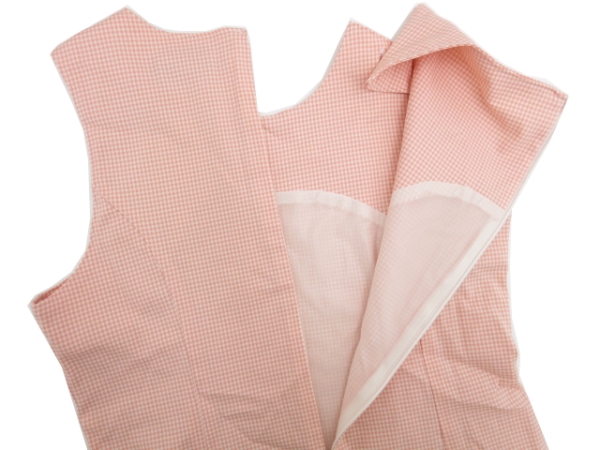ピンク×ホワイトのチェック柄ワンピースになります。
