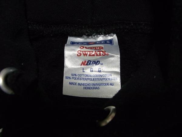 即決!USA古着●ロゴデザインスウェットパーカーL黒●アメカジビンテージ!アメリカで買ってきましたユーズドのロゴデザインスウェットパーカーです。3枚目写真がバックになります。カラーはブラック、表記サイズLで、着丈(後ろ)約61.5cm、身幅約56.5cmです。素人採寸ですので多少の誤差はご了承お願い致します。状態は古着ですので、ある程度の着用感あります。特別目立つキズ、よごれはありませんが、あくまで古着として考えてください。古着にご理解のある方の入札お願いします。首元の紐は付いてます。定型外郵便または、ゆうパック着払いでの発送になります。他にもいろいろ出品しています。よろしくお願いします。