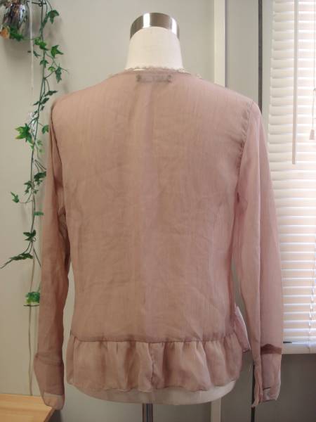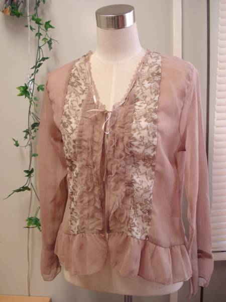 シースルーの柔らかな印象に、レースやリボンのフェミニンなデザインのカーディガンになります(*^_^*)