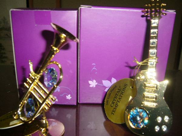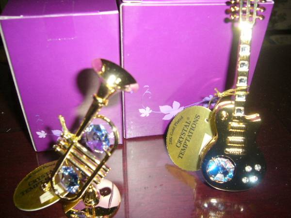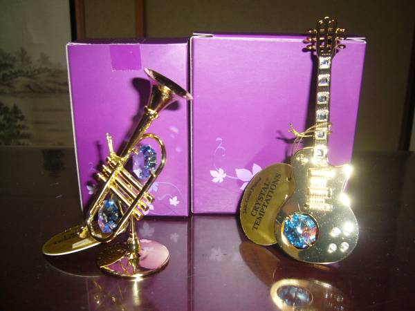 【商品】☆新品「スワロフスキー(クリスタル置物:トランペット&ギター 飾りカラークリスタル)」☆