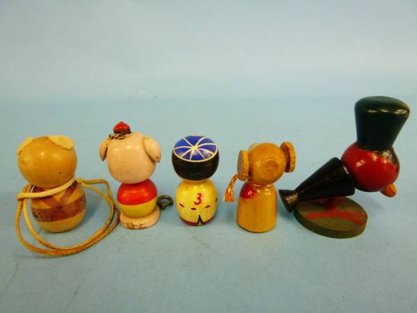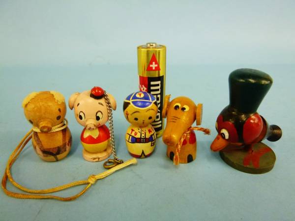 | 古い★マスコットこけし・子豚・野球坊や・象・鳥・5点セット・昭和レトロ★ | |