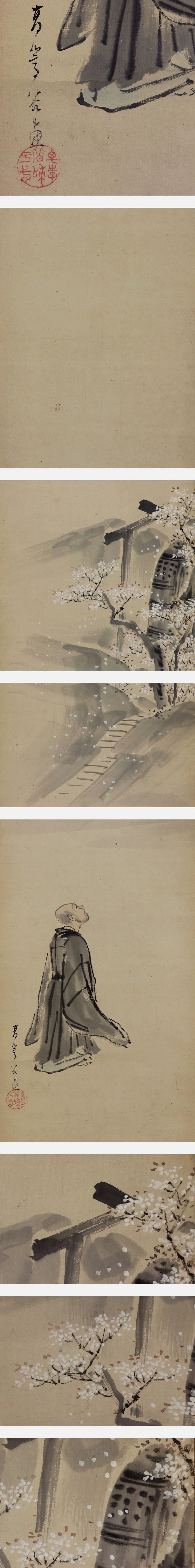 | №2106123【真作】高嵩谷【芭蕉観桜図】◆紙本◆共箱◆掛軸 | |