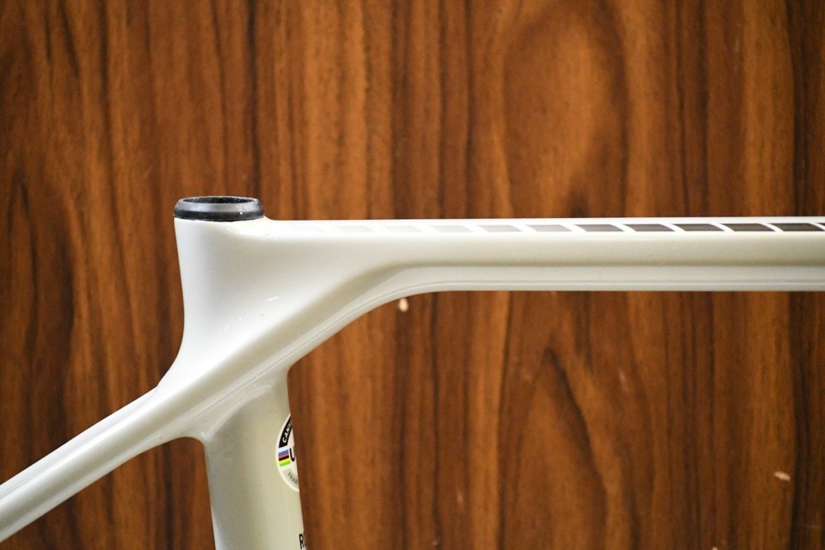 | 仕様 | 年式:2021 フレーム:カーボン フォーク:カーボン BB:BB86 FDマウント:直付け シートポスト:27.2mm コラム径:1-1/4 コラム長:190mm ハンドル:ERGOCOCKPIT SL 380mm ステム:ERGOCOCKPIT SL 80mm OLD:100x12mm/142x12mm thru axle サイズ:XS トップチューブ長(C-C):527mm ※ホリゾンタル換算値 シートチューブ長(C-T):462mm ヘッドチューブ長:115mm 適応身長:166cm~171cm 程度 実測重量(フレーム):1,070g 実測重量(フォーク):410g 実測重量(ハンドルステム):290g ※掲載画像状態 |
