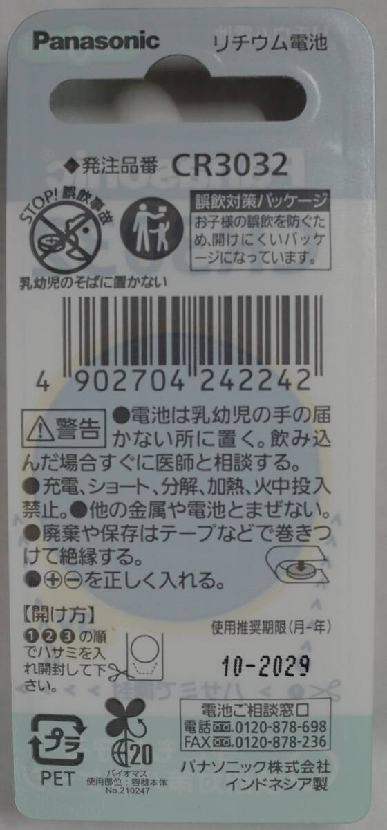 ★【即決送料無料】1個415円 Panasonic CR3032 3V パナソニック 使用推奨期限:2029年10月★