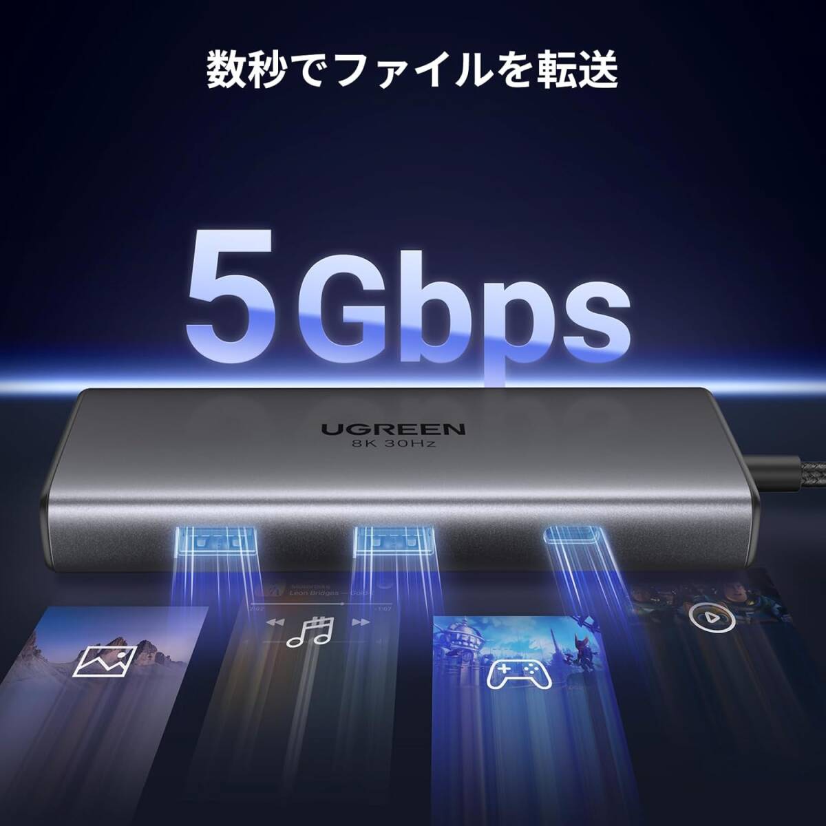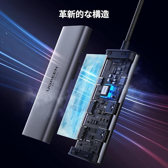UGREEN Revodok 206 6 in 1 USB Cハブ 2*HDMI出力 ドッキングステーション 4K@60Hz 単一出力8K@30Hz 100W PD急速充電 5Gbps高速データ転送