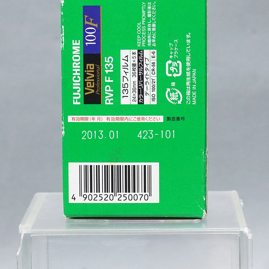 FUJIFILM FUJICHROME Velvia 100F RVP F135-36 5本入り 期限切れ。外観は外箱に汚れがあります。冷蔵庫に保存はしておりましたが期限切れの為写り具合に対しての保証は有りません。期限は2013/01です。中古ですから傷や汚れを気になさる方は入札をご遠慮ください。