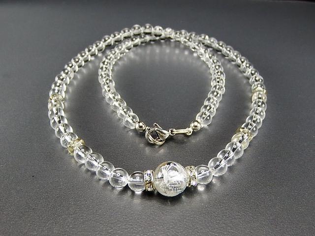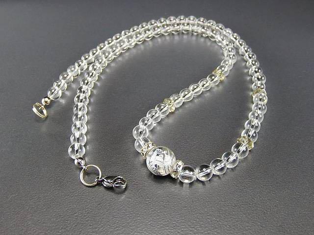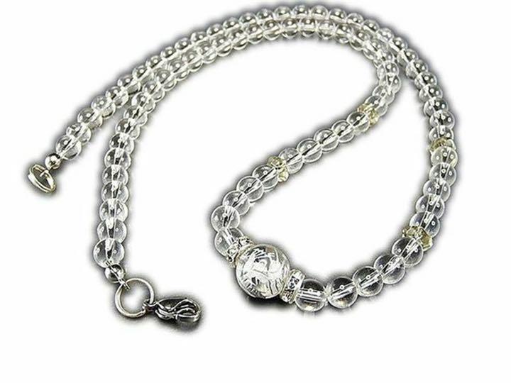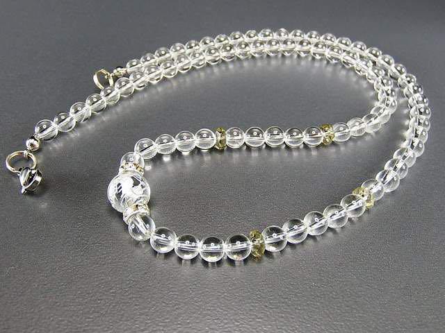 開運天然石昇龍本水晶手彫り銀箔水晶ネックレス石街 全長約60cm プライム