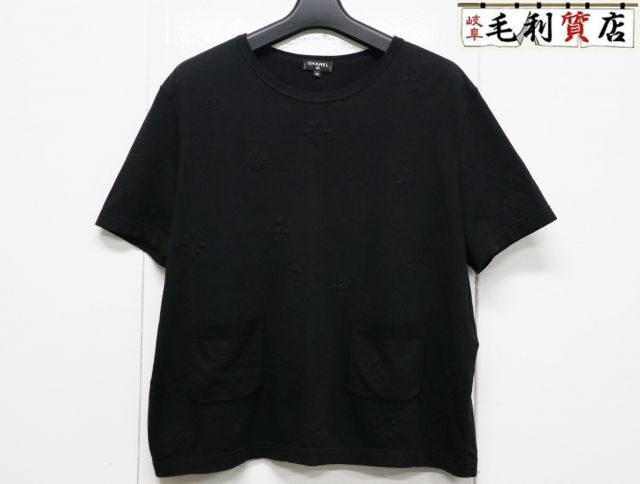 | シャネル CHANEL カットソー ココマーク アイコン P70428 コットン Tシャツ サイズ38 ブラック ポケット付き 【中古】 トップス |