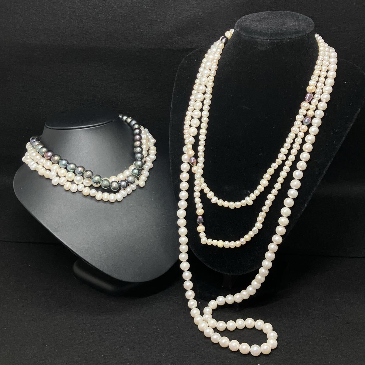 〈本真珠ネックレス3点&ロングネックレス2点おまとめ〉