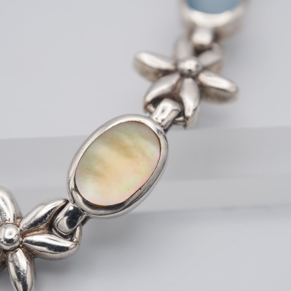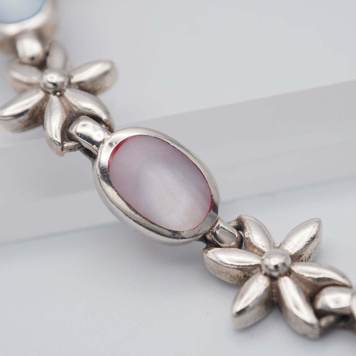 G931 シェル 925刻印 ブレスレット フラワー マルチカラー デザイン シルバー ヴィンテージ