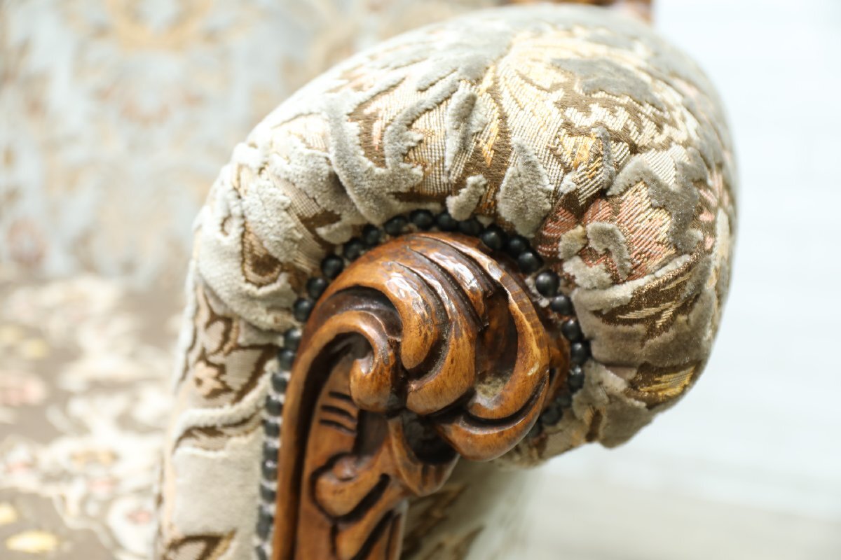 象徴されるヨーロッパデザインが魅力の華やかなソファです。