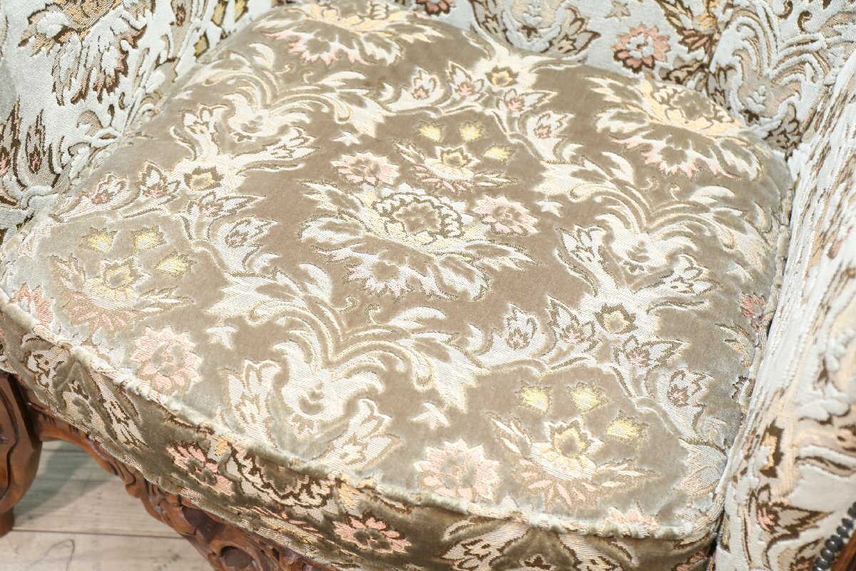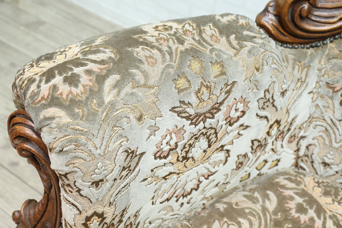 金華山織りのしっとりした手触りと愛らしい猫脚、クラシックな彫刻に