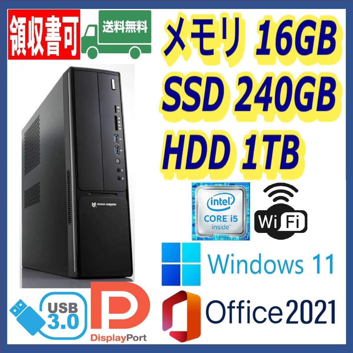 ■Mouse Computer LM-iHS310X-EXです。 超高速CPUにSSD、大容量HDD、大容量メモリを搭載したハイスペックPCです。 ■超高速Intel Core i5-6400搭載 ターボブースト時、3.3GHzの4コアが駆動しますので、非常に高速です。 (省電力時は2.7GHz動作です。) ■超高速SSD240GB搭載 起動ドライブとしてSSDを搭載していますので、ほとんど待つことなくすぐに起動します。 驚きの速さだと思います。 その他、起動に限らず、どのような作業も極めて高速です。 HDDとは別次元のスピードです。 ■大容量HDD1TB(1000GB)搭載 データ保存用として十分な容量で、動画等の大きなデータも多数保存できます。 ■メモリ増設して大容量16GB搭載 大容量で、どんな作業も余裕でこなせます。 転送速度が2倍になるデュアルチャネル(Dual Channel)構成なので、高速動作します。 ■USB3.0搭載(背面2箇所) USB3.0は、これまでのUSB2.0と互換性を保ちながら、データの転送速度が最大5Gbpsとなり、USB2.0(最大480Mbps)の10倍以上になりました。 従来の機器もそのまま使え、USB3.0対応機器同士で接続すればさらに快適になります。 ※USB2.0も正面2箇所、背面2箇所あります。 ※USB3.0端子には、SSという文字が刻印されています。SSは、Super Speedの略でUSB3.0の規格名です。 ■DVDスーパーマルチドライブ搭載 DVD鑑賞はもちろん、DVDやCDを焼くこともできます。 ※ブルーレイ対応のPCをご希望の方々のため、ブルーレイドライブ(オプション)も用意しています。 ■ギガビットLAN対応 通信速度を1Gbpsの高速通信に対応しています。 ※光ファイバー環境でも余裕で高速対応できます。通常の回線でもバッチリ使用できます。 ■無線LAN(Wi-Fi)対応 インターネットや周辺機器など高速な無線通信ができるようになっており、幅広い環境で使用可能です。 ■フルHD表示対応 グラフィックスは、インテルHDグラフィックス530搭載です。 高解像度で、大画面TVやモニターなどフルHD表示に対応し、動画再生なども高画質で楽しめます。 ■マルチモニター対応 D-subミニ15ピン(VGA)端子、DVI端子、DisplayPort端子に2台のモニターをつないで、両画面に同時に表示できます。 ※オプションの変換アダプターを使えば、DisplayPortをD-subミニ15ピン(VGA)、DVI、HDMIに変換することもできます。 ■Windows 11 Pro 64bit (日本語版)搭載 最新のWindows 11を搭載・認証してあります。 面倒な修正プログラムなどすべて最新の状態になっており、商品到着次第すぐに使用できます。 ■DtoD領域あり リカバリディスクなどなしでいつでも到着時の状態にリカバリできます。 また、リカバリディスクをご自身で作成して、それを使ってリカバリすることもできます(そのためのツールが入っています)。 ■Microsoft Office 2021 (日本語版)搭載 Microsoft Office 2021をインストール・認証してあります。 Word、Excel、PowerPoint、Access、Outlook、OneNote、Publisherがプリインストールされており、即使用可能です。 ※Office 2021は、Office 2019の基本機能をそのままに新しい機能を追加した最新Officeです。 ※Office 2021のExcel、Word、PowerPointでは、「自動保存」、「画像やアイコンなどの挿入」、「OpenDocument(ODF)1.3」などが追加されています。 ※下位互換性を保っていますので、Office 2019やOffice 2016のファイルなどは今まで通り扱えます。 ※最新Office 2021は「Windows 11 対応版」です。将来的に考えても安心です。 ※永続ライセンス版(使用期限:永久無期限)です。 ■便利なソフト搭載 ①セキュリティ Microsoft Windows Defenderを搭載しています。 安心のMicrosoft社製セキュリティ・ウイルス対策ソフトウェアです。 追加料金不要で使い続けられます。 ※ウイルスパターンファイルは自動更新され、常に最新の脅威から保護されます。 ※出品前にすべてのファイルをスキャンし、安全であることを確認済みです。 ②ブルーレイビデオ、DVDビデオ、動画再生 一般的な市販のブルーレイビデオ、DVDビデオ、動画、CD、メディアファイルなどのコンテンツの再生ができます。 面倒な設定がなく、再生が可能です。 ③DVD、CD作成 DVD、CDが作成できるソフトが入っています。 大切なデータに暗号保護をかけてディスクへ記録が可能です。 ④動画編集 動画、写真を組み合わせてムービーを作成が可能なソフトが入っています。 ⑤メール 最新のMicrosoftメールソフトがインストールされています。 ■電源ケーブルをご希望の場合は、落札後メッセージにてお知らせください。 ■清掃済みですが、中古につき、落ちない汚れやキズはある程度あります。画像は流用です。 ■フルHD表示(1920x1080)用に設定してありますので、もしそれよりも低い解像度のモニターでお使いの場合、落札時にお申し出ください。 そのモニター用に解像度を設定します。 ■オプションとして、以下のものを用意できます。 ①D-subミニ15ピン(VGA)変換アダプタ:1980円 DisplayPortをD-subミニ15ピン(VGA)端子に変換します。これで、D-subミニ15ピン(VGA)出力が1出力増えます。 ②DVI変換アダプタ:1980円 DisplayPortをDVI端子に変換します。これで、DVI出力が1出力増えます。 ③HDMI