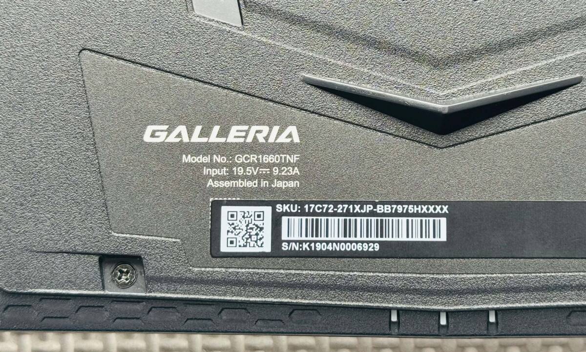 GTX1660Ti 6GB フルHD 17.3型 GALLERIA GCR1660TNF ★ Core i7-9750H メモリ16GB SSD無し カメラ ★ ジャンク品