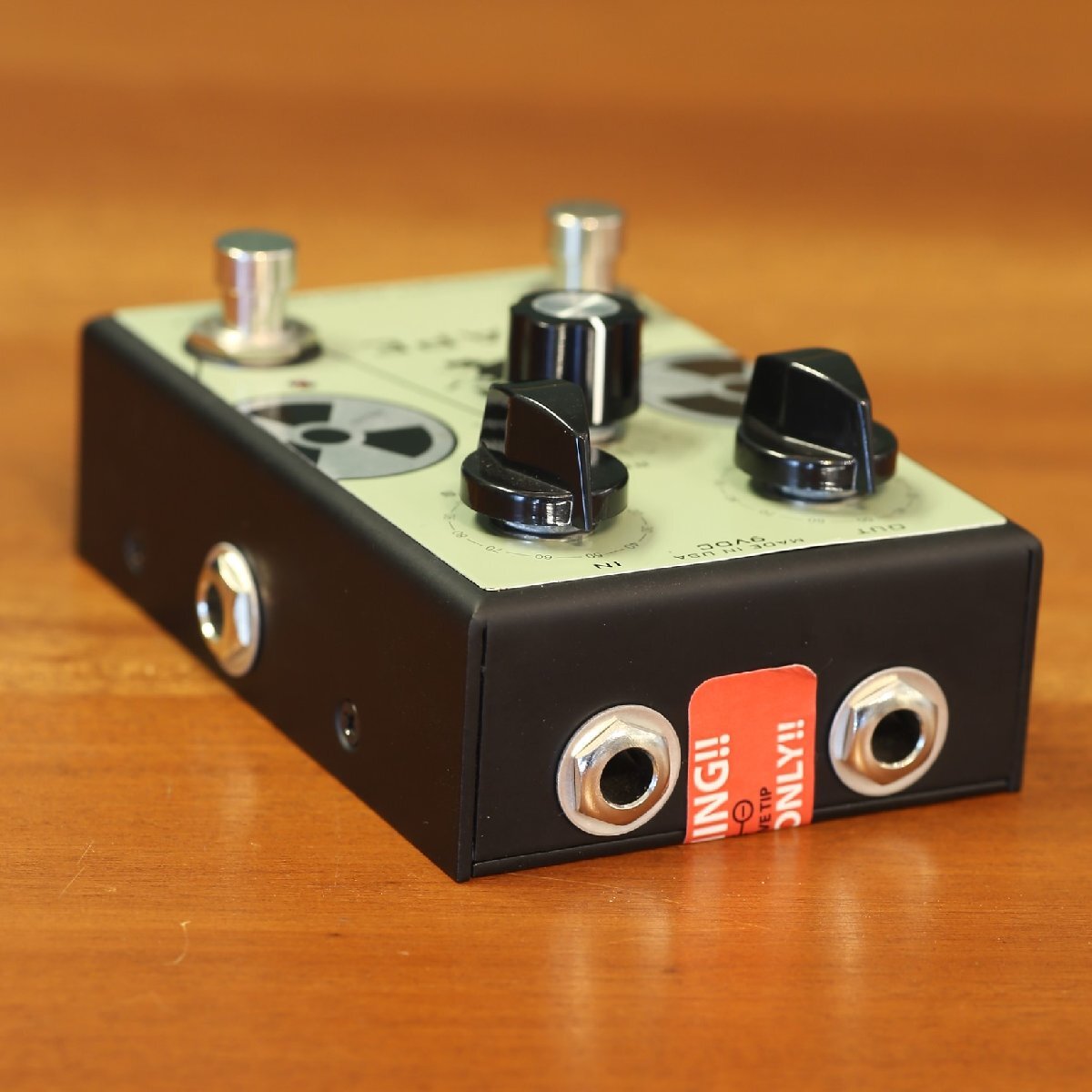 エイプはディレイ(別売)と組み合わせ、2つの接続方法で使用できます。 ひとつはディレイをAPEの直後に接続するシリーズ接続です。 もうひとつはセンド/リターン端子を用いてディレイと繋ぐ、ループ接続です。 APEをディレイの前段に接続したシリーズ接続では、全体のシグナル・パスにEPテープエコーの名機「Echoplex」)的なサウンドを加えることができます。 シリーズ、ループの接続を問わず、ディレイをAPEの直後に接続し、ブースターやオーバードライヴの後に配置することをお勧めします。 ※保証書は付属致しません。予めご了承の上、ご注文ください。 商品到着後8日間まで、初期不良品にのみ返品、交換対応します。 通常販売価格 \30,800(税込) ⇒ セール価格 \18,480(税込) SPEC ■コントロール: Mix, Repeat, Rec ■スイッチ: ループ, エフェクトOn/Off ■入出力端子: Input, Output, Send, Return, DC In ■電源: 9VDC (別売パワー・サプライ) ■消費電流: 39mA ■サイズ(最大外形寸法): 110.5(L)×77.5(W)×48(H)mm ■重量: 約492g ※DC In適応プラグ・サイズ: 内径2.1mm / 外径5.5mm ※別売パワー・サプライの極性は必ずセンター・マイナスを使用して下さい。 推奨パワー・サプライはMusic WorksのDC0913Bとなります。 |