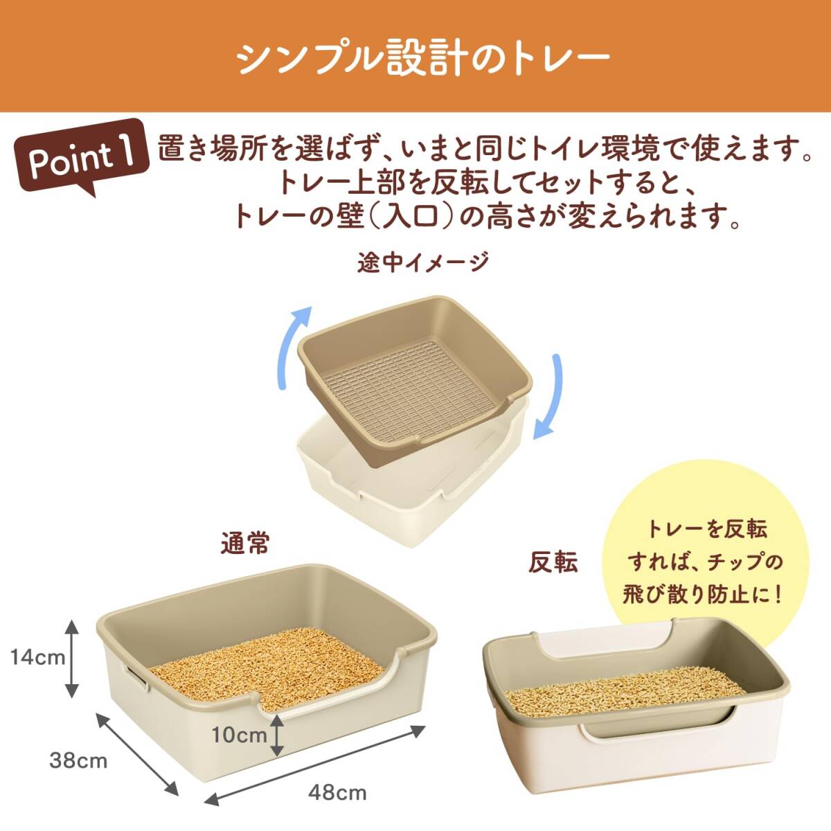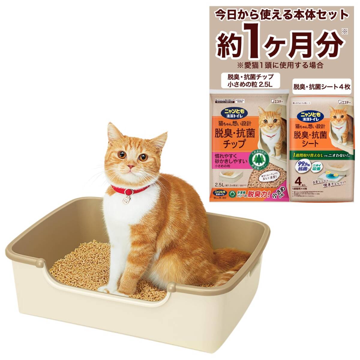 ニャンとも清潔トイレ 猫 トイレ [約1か月分チップ・シート付] シンプルタイプ 省スペース お手入れ 簡単 ライトベージュ 成猫 子猫 猫用 トイレ本体