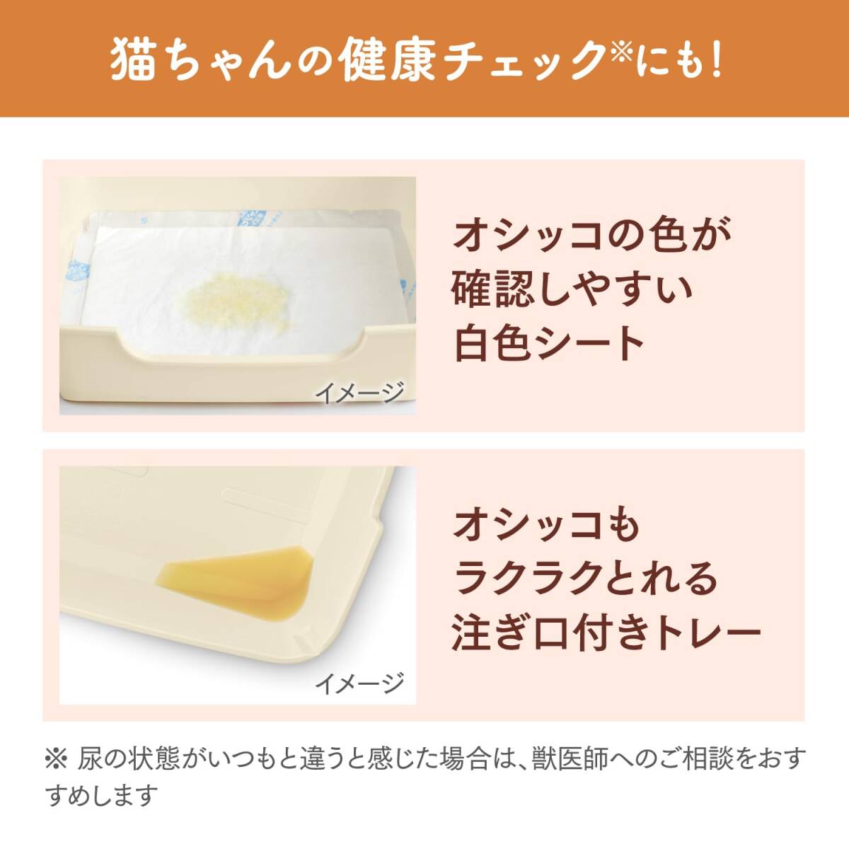 「脱臭・抗菌シート」は、表面が白くオシッコの色がわかりやすいので、健康チェックが簡単にできます。