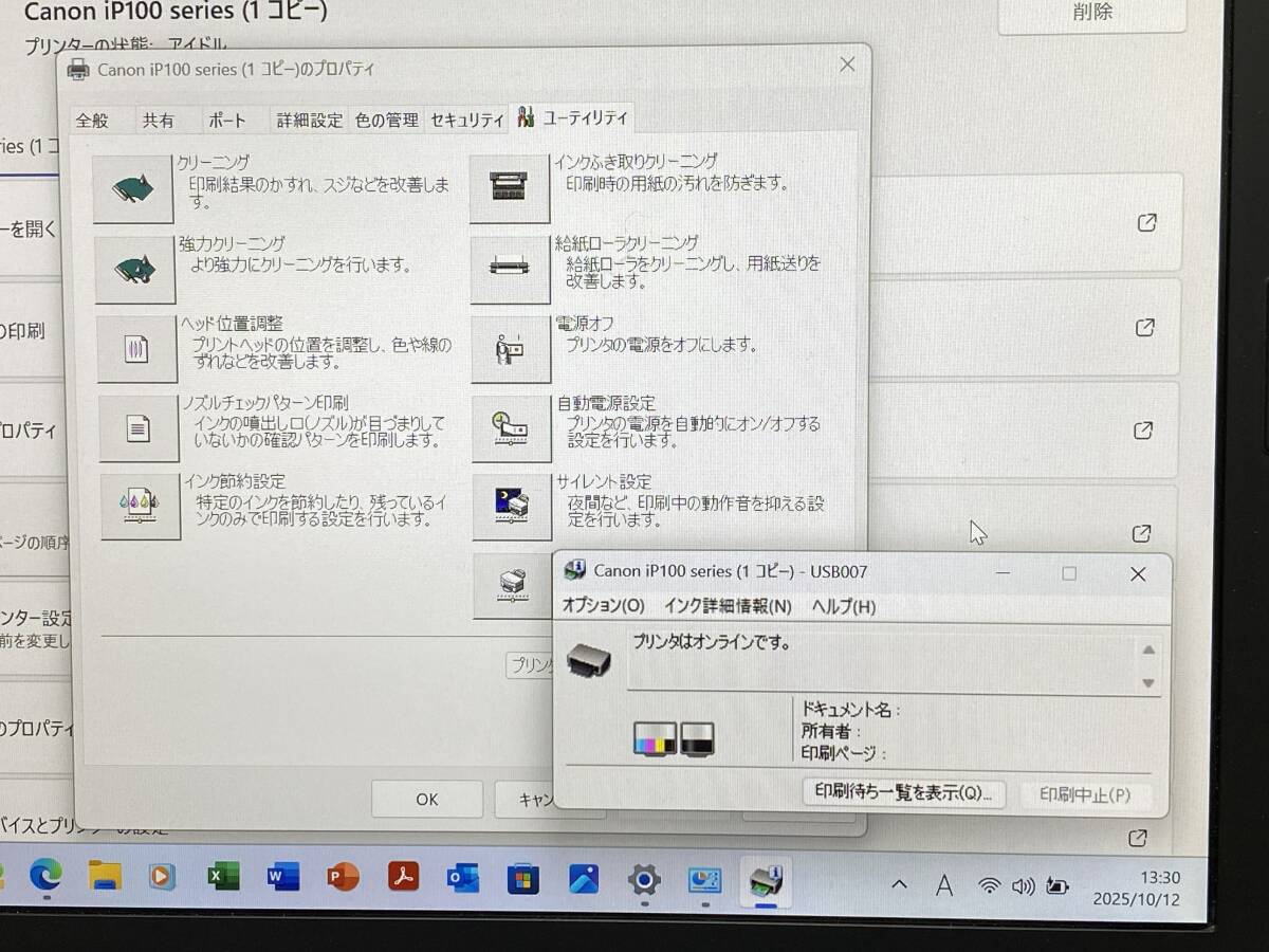動作品!美品!キャノン/Canon!ピクサス/PIXUS!インクジェット!モバイルプリンター!ip100!★純正インク使用でノズル正常動作品!