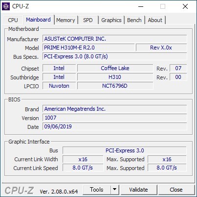 CPU-Zでマザーボードを認識できることを確認しております。