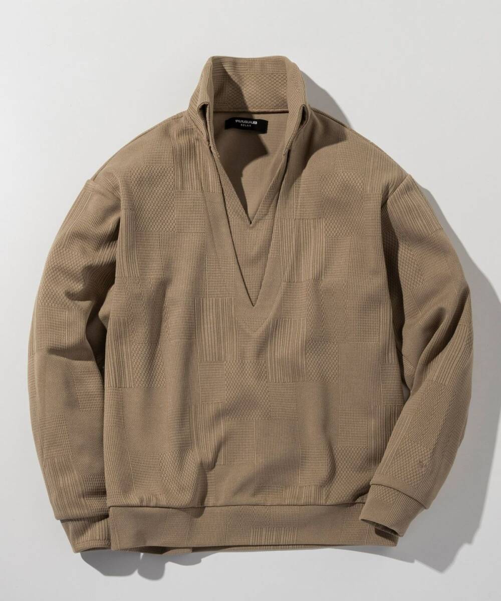 25AW◆1PIU1UGUALE3 RELAX◆レイヤードカラージャガードニット◆USH-25011SN70/ベージュ ①◆ ウノピゥウノウグァーレトレリラックス