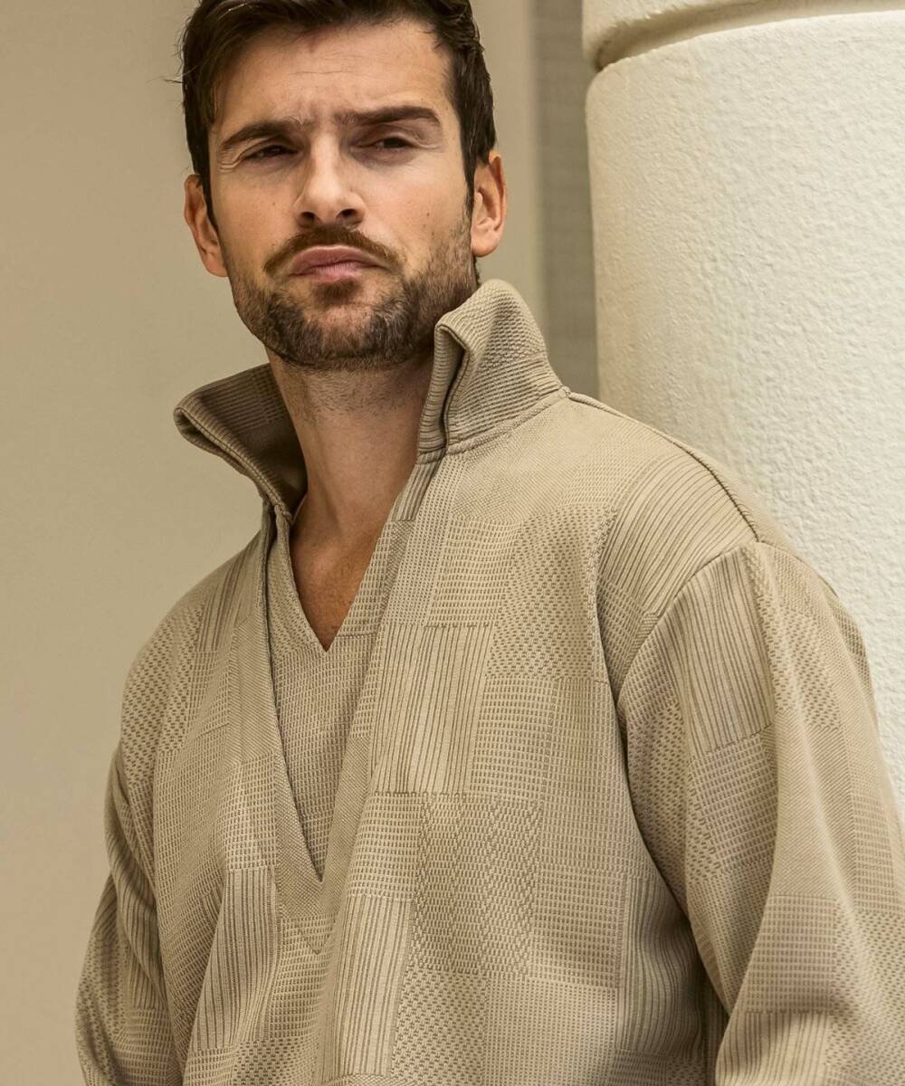 繊細な編地が豊かな表情を形成するジャガード生地を贅沢に採用。