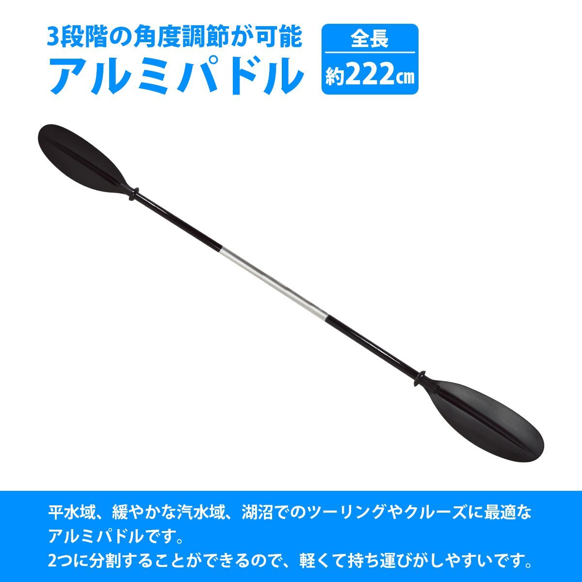 【送料無料】『全長222cm』3段階の角度調整が可能 カヤック パドル 『黒/ブラック』ボート ゴムボート カヌー アルミ製 オール 海 川 湖