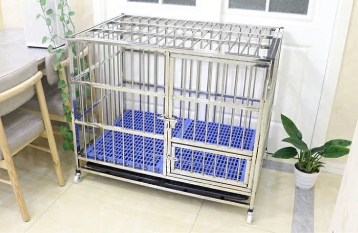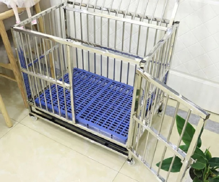 【訳あり品】ステンレス製 ドッグ ゲージ 犬用ケージ ハウス(幅108x奥行 72x高さ92 cm)中型~大型犬用
