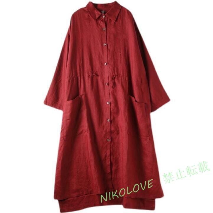 サイズ バスト:126cm、着丈:112~117cm、肩幅:48cm、袖丈:47cm、 素材:コットン 麻