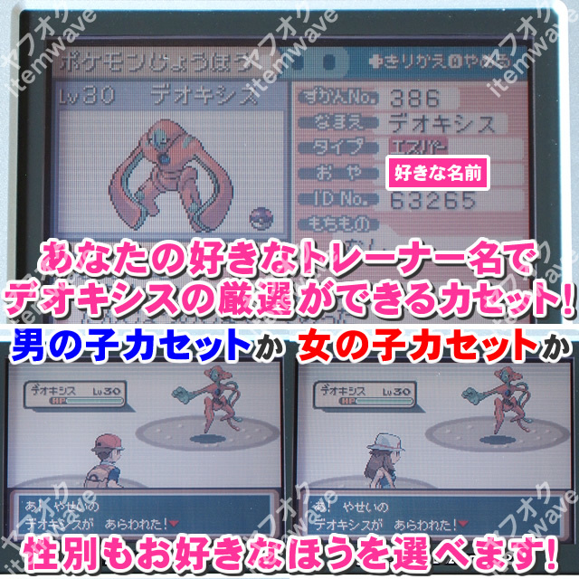 豊富なコレクションの中から「あなたの好きなトレーナー名でデオキシス・ルギア・ホウオウなどの厳選ができるカセットをお届け」します。
