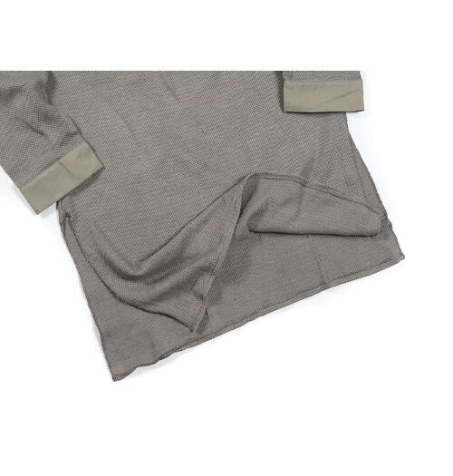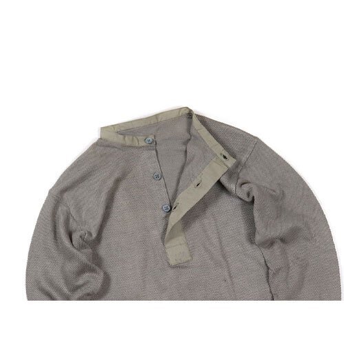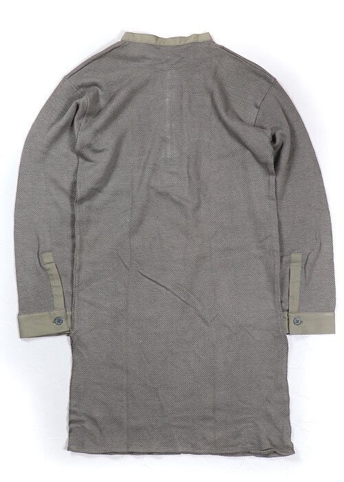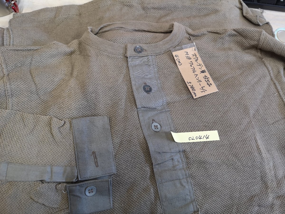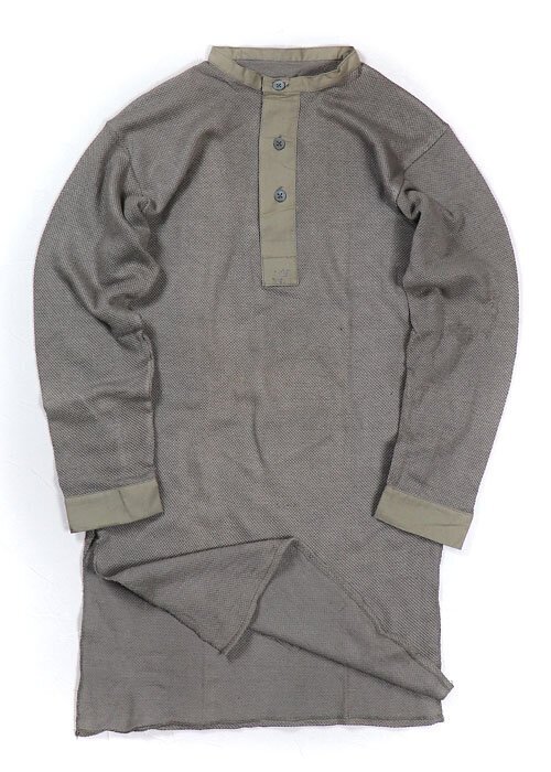 「スウェーデン軍により1939年に採用されたワッフル生地のアンダーシャツです。パンツにインをして着用する為、着丈が長く作られています。デッドストックにより、最初は固く感じる肌触りですが、着用と洗濯を繰り返す事により肌馴染みが良くなり、より雰囲気が増すアイテムです。襟と袖にはツイル素材が使われ、ワッフル素材とのコンビがデザインにアクセントを加えてくれています。」 5枚目までの画像は流用です。サイズ4で着丈84cm(スリットが20cmほど入ってます)、身幅49cm、肩幅48cm、袖丈51cmで。素材:コットン100%で肌触りは最高。 ※デッドストック(未使用品ですが長期にわたり倉庫にて保管されていた商品)の為、日焼け的な色落ち、織キズなどがある場合があります。 沖縄離島を除く全国500円でお送りいたします、落札価格にプラスでお願いいたします。