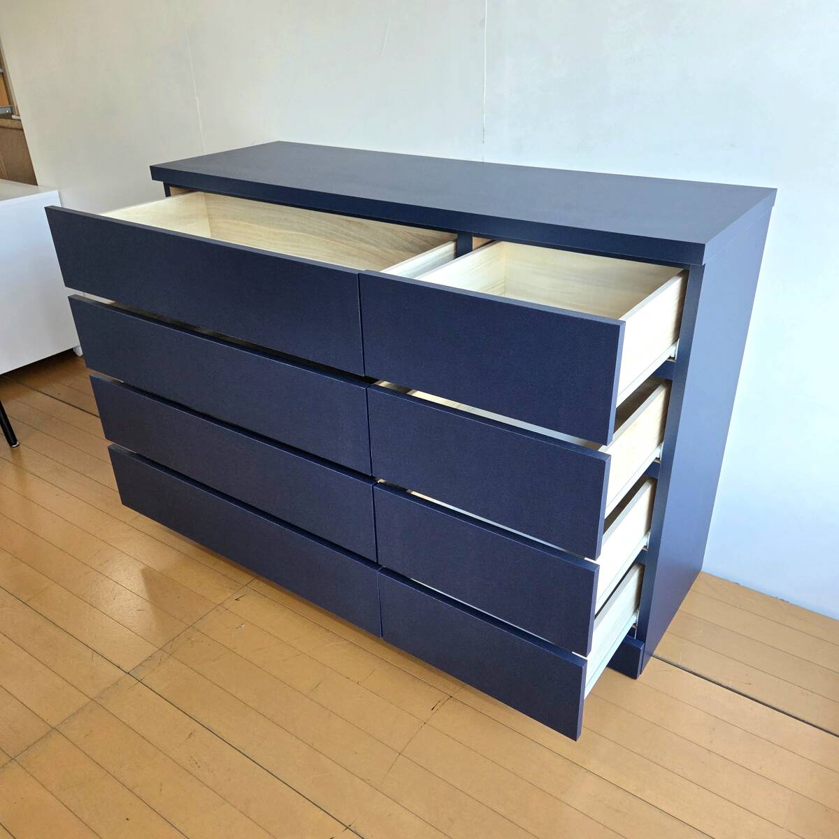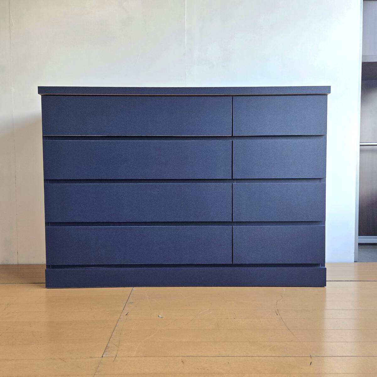 未使用訳あり 全段スライドレール付き ネイビー チェスト 幅119.5 4段 タンス たんす 洋服タンス ロータイプ 引出し 濃紺 青 ブルー