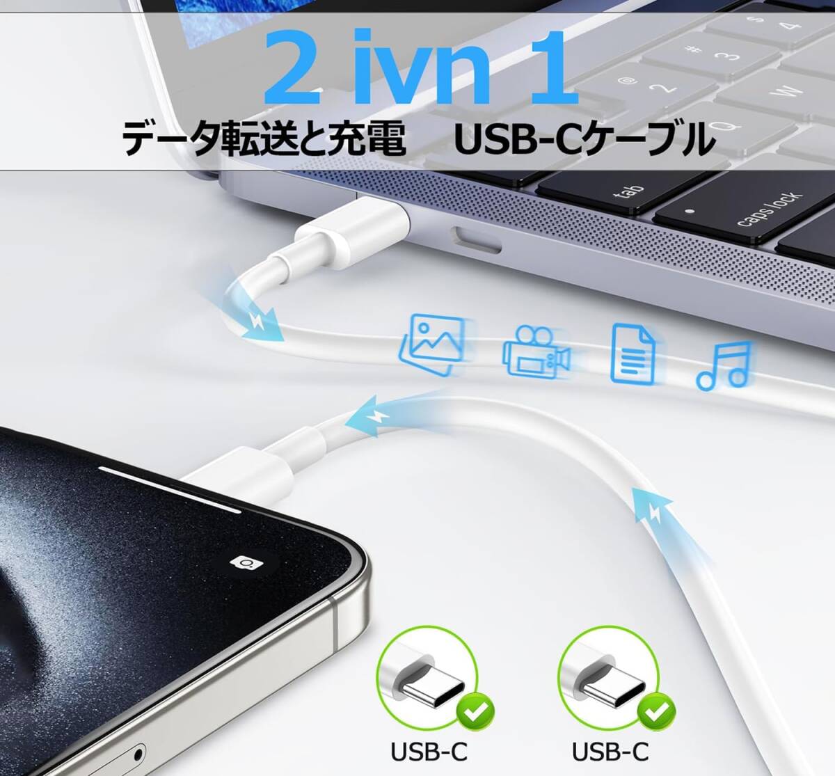 • 【幅広い互換性】このUSB-C & USB-Cケーブルは、スマートフォン、タブレット、ノートパソコン、ゲーム機など、さまざまなUSB-Cデバイスに充電とデータ転送に対応しています。対応機種には、iPhone 16シリーズ(iPhone 16、iPhone 16 Plus、iPhone 16 Pro、iPhone 16 Pro Max)、iPhone 15シリーズ(iPhone 15、iPhone 15 Plus、iPhone 15 Pro、iPhone 15 Pro Max)、Galaxy S23 Ultra/S22/S21、iPad Pro(2020/2022)、iPad Air 5/4、iPad mini 6、MacBook Air、MacBook Proなどが含まれ、多くのデバイスに幅広く対応可能です。