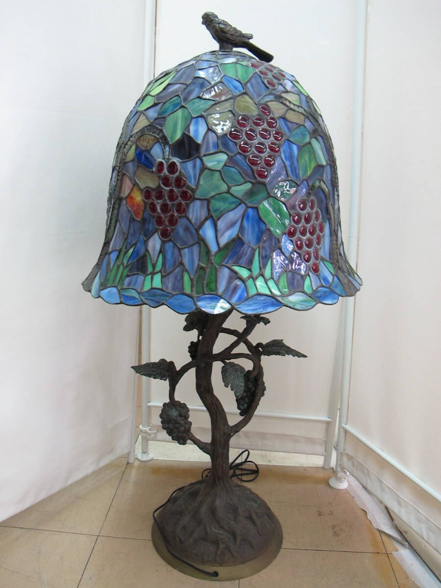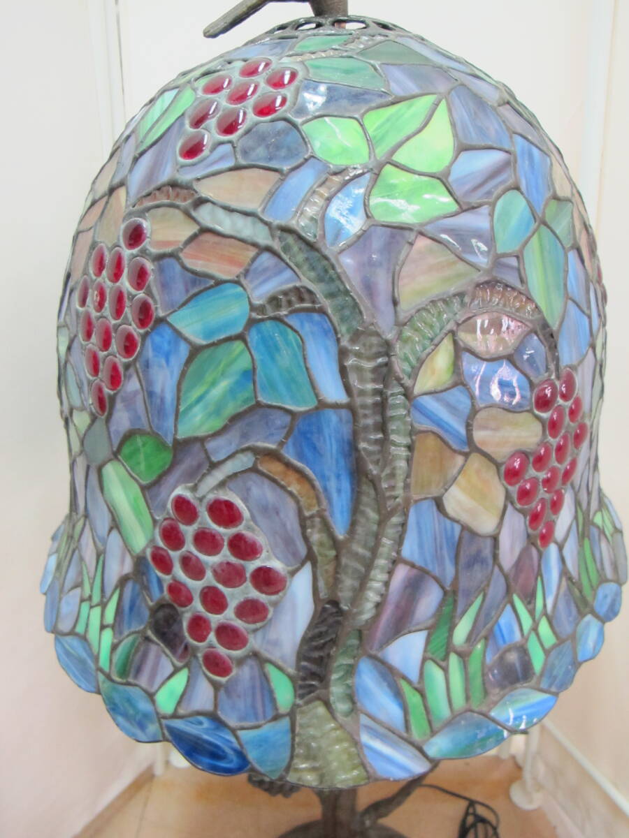 T11-10 大型 フロアランプ ステンドグラス風 葡萄柄 全長:約101㎝ スタンドライト 照明 レトロ アンティーク ヴィンテージ コレクション