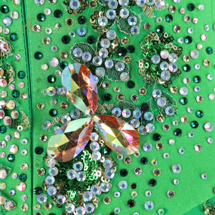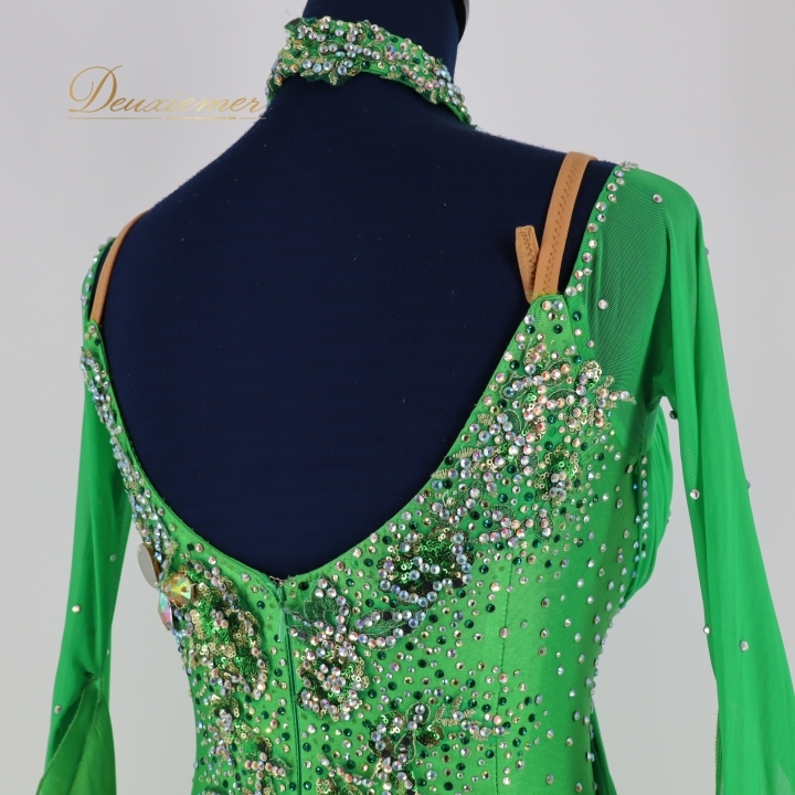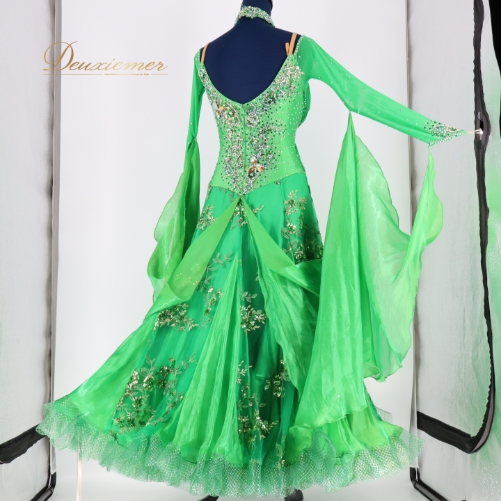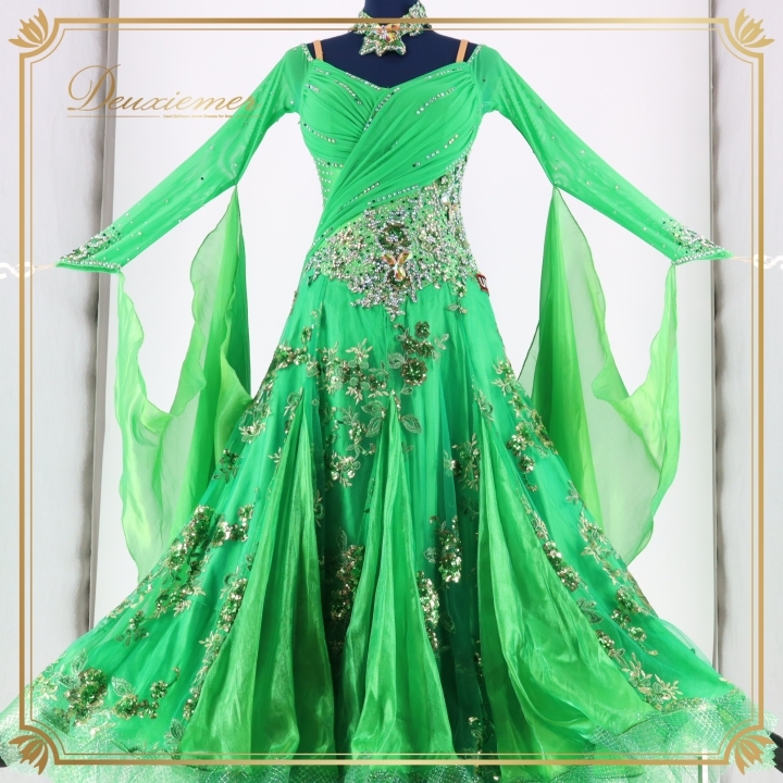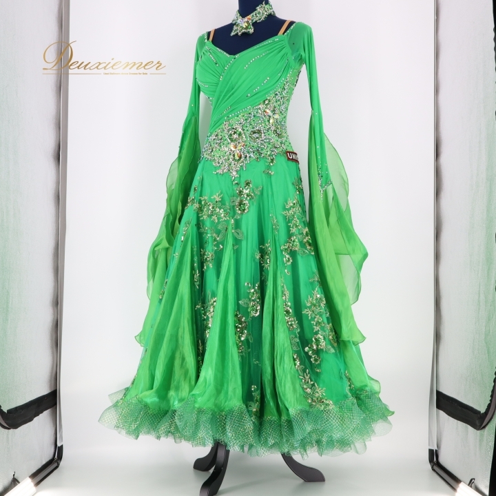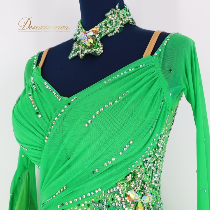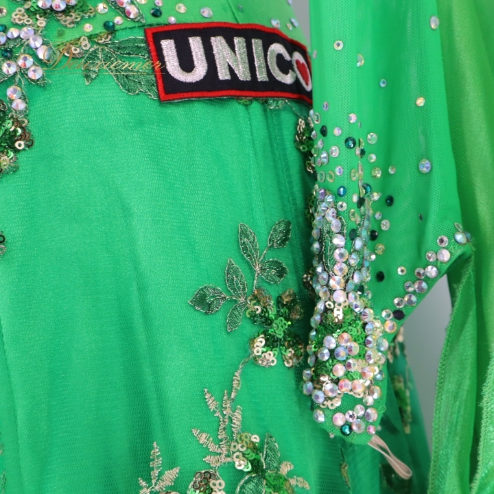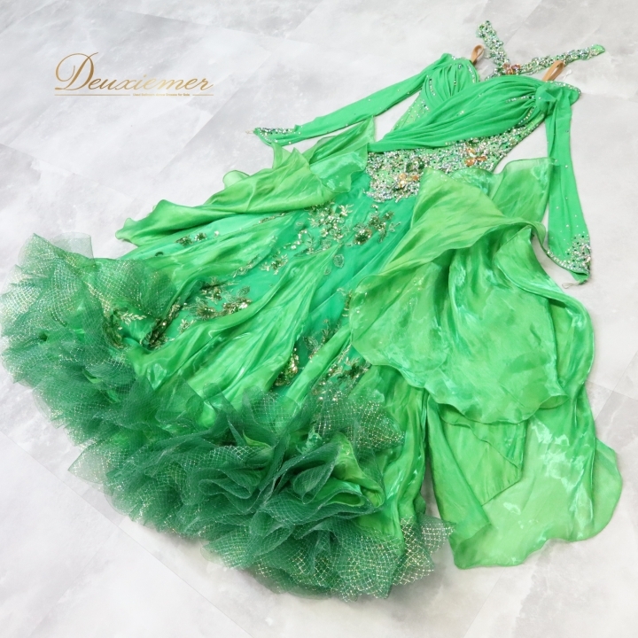 | 【商品名】社交ダンス 衣装 ワンピース ドレス 【サイズ】M表記 平置き実測:総丈約130cm(裾~肩部まで)、身幅約37cm、ウエスト約29cm~ ※実測の為、多少の誤差はご了承ください ※9号のトルソーにぴったりくらいのサイズ感です 【仕様】 ・背面ファスナー仕様 ・レオタード(ボタン)仕様 ・上半身のみ伸縮性有り ・胸パッド有り 【品質表示】 表示無し ------------------------------------ 【ポイント】 ▽UNICO ウニコ ▽鮮やかな緑色がフロアで映える色味 ▽スパンコール&ラインストーンが輝くドレス ▽スカート2枚重ね ------------------------------------ 【撮影時使用トルソー】 種 類:女性用トルソー9号 (一般的に使用されるサイズです) サイズ:肩先~床約135cm(身長約160cm)、肩幅約37cm、バスト約88cm、ウエスト約66cm、ヒップ約89cm |