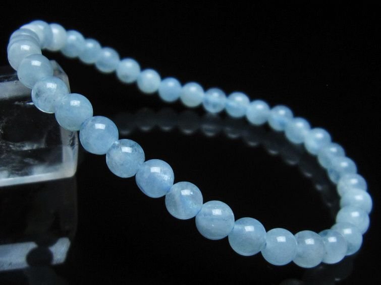 | ■商品名: アクアマリンブレスレット ■商品ID: T35-19967 ■商品重量:約 6.4g ■商品サイズ:内周約:156mm(±5mm)粒直径約:5mm(±0.5mm) 【アクアマリン(藍玉)】 3月の誕生石として知られた天然石です。 ベリル(緑柱石)の一種のためエメラルドやモルガナイト、レッドベリルなどと同じグループにあるパワーストーンで、アクアマリンはブルーベリルの別名を持ちます。 「アクアマリン」という名称の語源はラテン語で水の意味のアクアと海の意味のマリナスに由来しています。 古代ローマの漁夫たちが海難防止と豊漁のお守りにしていたことや、海の精の宝物が海底から浜辺に打ち合げられて宝石になったとされているという言い伝えがあり、アクアマリンは旅の安全のお守りとして一つは持っておきたいストーンです。 また、アクアマリンは穏やかさと包容力をもたらし、免疫力を高め体の不調を整え精神面と体調面でのサポートをしてくれるとされています。 さらには夫婦愛を高め恋人同士のすれ違いを無くすとされ、安産や子宝に恵まれる効果もあるともいわれています。 このように幸せな結婚を象徴する事から、アクアマリンは結婚や出産の贈り物におすすめです。 ⇒ アクアマリンをもっと詳しく ◆ワンポイント情報 アクアマリンの劈開は不明瞭、モース硬度は7.5~8となり十分な硬度がありますのであまり取り扱いに神経質になる必要はありませんが、石自体の内部にあるクラックやインクルージョンに力や衝撃が加わると割れてしまう可能性もある点にご注意下さい。 |