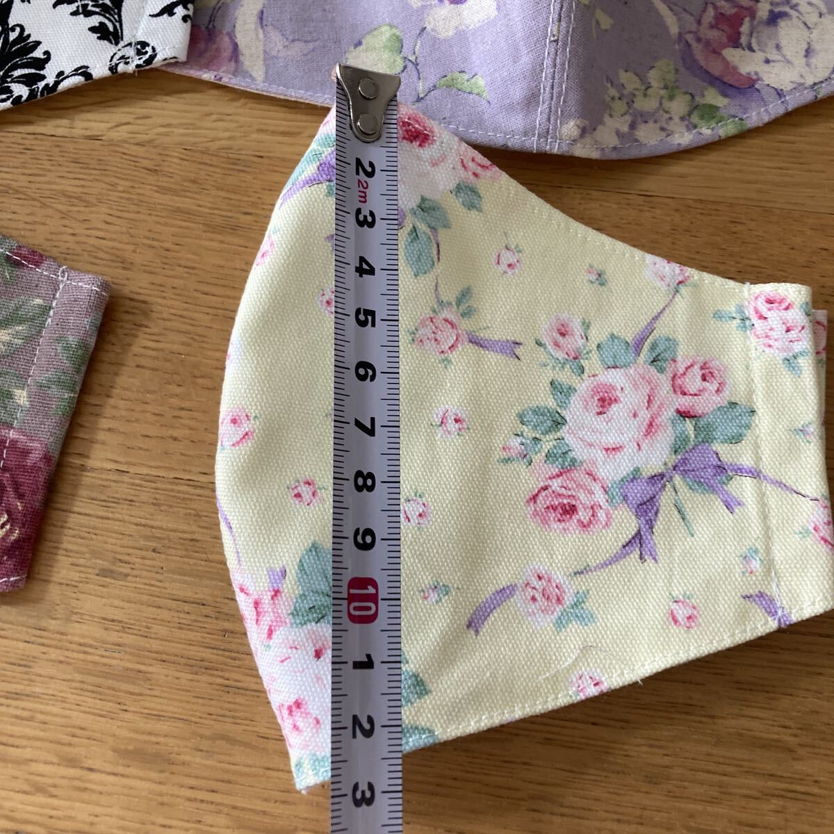 ハンドメイドです。素人作成ですので多少の左右ゆがみ大きさの誤差などあり。気になさる方の入札はお控えください。サイズはご自身でお確かめください。裏はダブルガーゼ です。ゴムはおつけします。