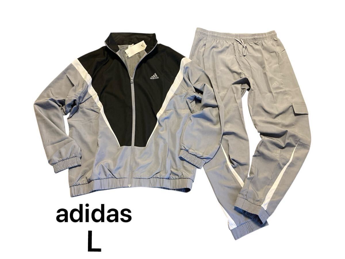 新品 正規品【adidas/アディダス】◆L◆ウーブン ジャージセットアップ◇グレー ブラック◆薄手◆ウインドブレーカー◆になります。